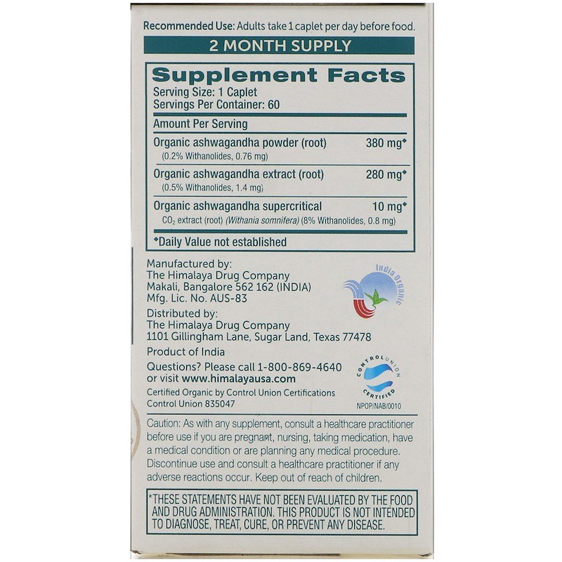 Organic Ashwagandha Adaptogen Release Stress Boost Energy 60 Caplets Himalaya Ebay