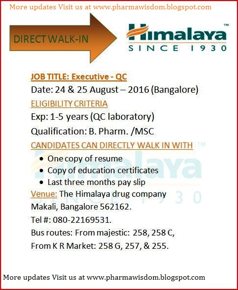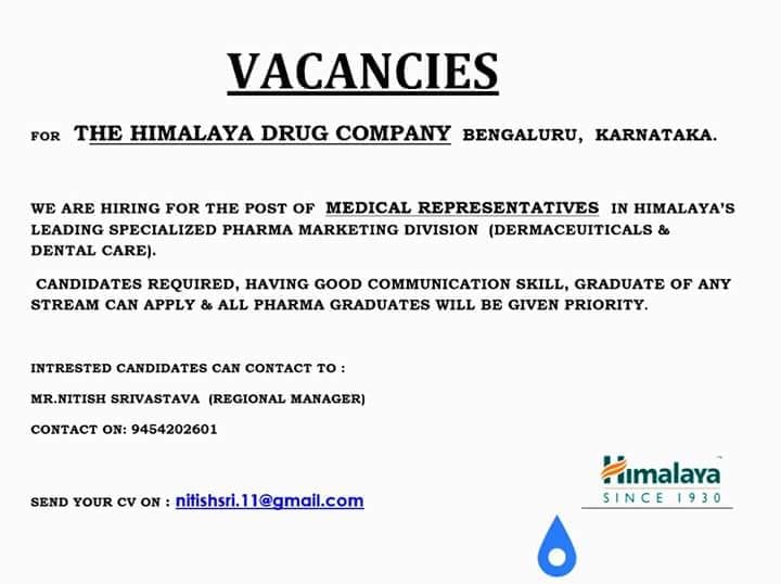 Himalaya Drug Company Jobs In Bangalore For Freshers 2020