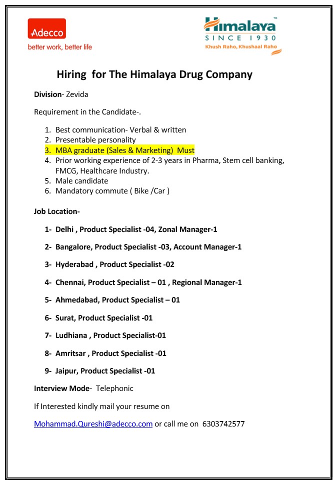 Urgent Requirement At Himalaya Drug Company Apply Now Pharma Job Portal